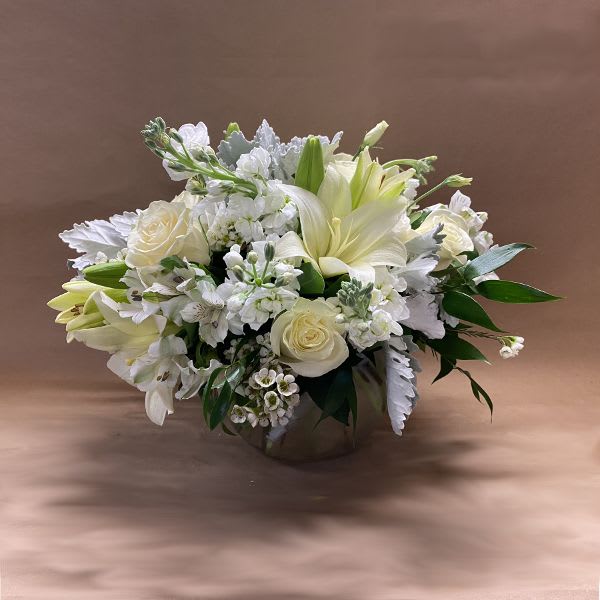 My good friend had lost her beloved cousin. She was in her Cohasset home while I was avoiding travel in my PalmBeach home. We found you and ordered on line. The arrangement was simple, elegant and perfect for our grieving friend. It was received promptly and in perfect condition. It buoyed her spirits. We all thank you!