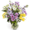 Garden Glow is a cheerful, garden-inspired arrangement bursting with fresh spring color. Sunny yellow roses bring warmth and happiness, while soft lavender stock, pastel daisies, and elegant white alstroemeria add layers of texture and charm. Finished with delicate baby’s breath and lush greenery, this bouquet feels light, joyful, and naturally abundant. Designed in a clear glass vase, Garden Glow is perfect for celebrating new beginnings, sharing gratitude, or bringing a touch of sunshine indoors.