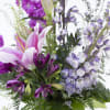 Lavender Grace is a refined and uplifting arrangement that blends soft pink lilies, rich purple alstroemeria, and airy lavender blooms with fresh seasonal greens. Designed with graceful height and movement, this bouquet feels both romantic and serene—perfect for expressing admiration, sympathy, or heartfelt appreciation. Artfully arranged in a clear glass vase, it brings a gentle elegance to any space and occasion.