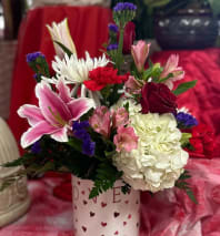 This colorful valentine arrangement will put a smile and light up your valentine's face for sure.