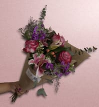 This traditional design is a mix of fresh and premium, seasonal flowers in the color scheme of pink and purple. This arrangement will be made up of the same look, color, and feel but use different flowers based on the season.
