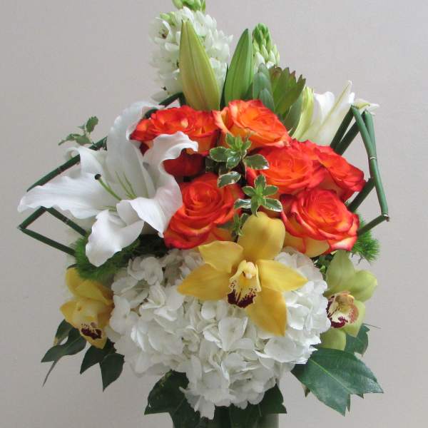 Another beautiful arrangement by Crown Valley Florist. They never disappoint; always innovative, gorgeous designs and high quality flowers. Thank you!!