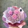 3 roses bi-color bouquet on the bed of baby's breath