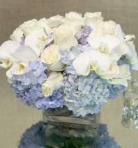 This arrangement has the dimensions of: a head of 14" and a height of 14". The design features white hydrangeas, pink roses and white orchids. This wonderful arrangement is brought to you by My Beverly Hills Florist and it has the exciting ability to show how much you care for someone with its living color.