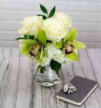 In some instances, the florists’ photo may represent an overall theme or look and include a one-of-a-kind vase which cannot be exactly replicated. Although the actual bouquet may not precisely match the photo, its temperament will. Occasionally, substitutions of flowers or containers happen due to weather, seasonality and market conditions which may affect availability. If this is the case with the gift you've selected, the local florist will ensure that the style, theme and color scheme of your arrangement is preserved and will only substitute items of equal or higher value.