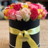 This gorgeous deluxe hatbox full of 24 beautiful mixed color roses makes a perfect gift for any occasion!
