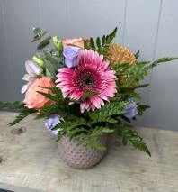 In some instances, the florists’ photo may represent an overall theme or look and include a one-of-a-kind vase which cannot be exactly replicated. Although the actual bouquet may not precisely match the photo, its temperament will. Occasionally, substitutions of flowers or containers happen due to weather, seasonality and market conditions which may affect availability. If this is the case with the gift you've selected, the local florist will ensure that the style, theme and color scheme of your arrangement is preserved and will only substitute items of equal or higher value.