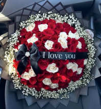 Red and white roses perfect combination for Mother's Day, Anniversary, Valentines Day and more occasion. This bouquet includes 6 red roses and 6 white roses, baby breath and red ribbon bow designed in a clear glass vase.