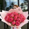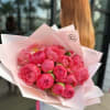 Bouquet of peonies with floral wrap.