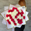 A stunning luxury bouquet featuring lush white and crimson roses arranged in a romantic heart pattern. Expertly wrapped in signature deFLORA packaging with golden edges, this masterpiece speaks the language of love and passion. Perfect for anniversaries, proposals, or any moment you want to make unforgettable.