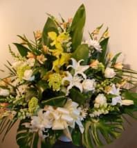 In some instances, the florists’ photo may represent an overall theme or look and include a one-of-a-kind vase which cannot be exactly replicated. Although the actual bouquet may not precisely match the photo, its temperament will. Occasionally, substitutions of flowers or containers happen due to weather, seasonality and market conditions which may affect availability. If this is the case with the gift you've selected, the local florist will ensure that the style, theme and color scheme of your arrangement is preserved and will only substitute items of equal or higher value.