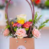 Coquette is a delicate and feminine floral arrangement designed in an elegant boutique-style bag. This piece features a curated selection of fresh, seasonal blooms —such as roses, carnations, and baby’s breath— paired with natural greenery for volume and texture.