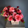 A romantic arrangement of hot pink and deep red blooms! This beautiful design of roses and spray roses in a 6x6 wooden birch box is sure to put a smile on your sweetheart’s face.