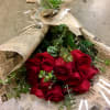 Dozen roses wrapped in classic newspapers tissue paper makes this bouquet unique,elegant and classy