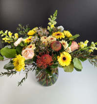 In some instances, the florists’ photo may represent an overall theme or look and include a one-of-a-kind vase which cannot be exactly replicated. Although the actual bouquet may not precisely match the photo, its temperament will. Occasionally, substitutions of flowers or containers happen due to weather, seasonality and market conditions which may affect availability. If this is the case with the gift you've selected, the local florist will ensure that the style, theme and color scheme of your arrangement is preserved and will only substitute items of equal or higher value.