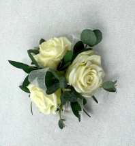 The delicate white spray roses pair with a dusty mauve flower gives a soft vintage vibe.