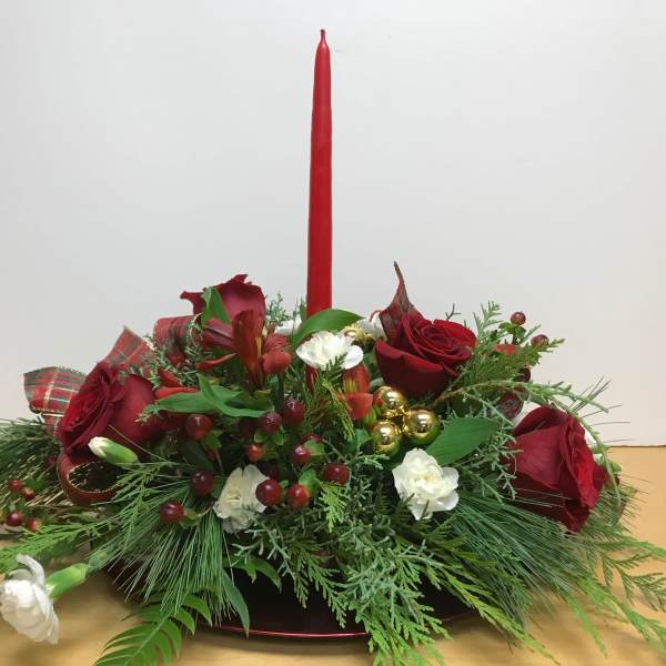 Maxine , enjoyed getting it. A very pretty Christmas arrangement of beautiful roses and greenery!