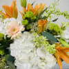 Our stunning floral arrangement is designed to create a delightful and inviting atmosphere. The fragrant lilies, daisies, and hydrangeas combine to produce a burst of color and scent that will lift your spirits and fill your senses. Whether you're looking to brighten up your home or surprise someone special, this arrangement is sure to make a lasting impression.