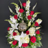 Honor and celebrate the fruitful life of a lost loved one with an arrangement that truly encompasses their elegance. The Missing You Urn arrangement is a luxurious addition to any memorial service. This arrangement features majestic white hydrangeas that will ease the minds and comfort the souls that are grieving with contrasting red roses to represent the vibrance of their life