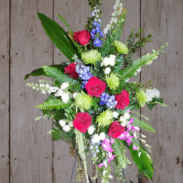 The arrangement was lovely and elegant. It was for a funeral service and brought the right balance of beauty, simplicity, and faith for such a somber occasion. Thank you for working with our family to make this happen, even the late changes we had to make. We appreciate the quick turn around and the delivery option too. (Especially as out of towners ordering for local family.)