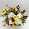 An arrangement of fall colors with safari, daisies, spray roses, roses, hydrangeas and gerbera that brings love to your day!