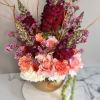 Make a statement with Golden Bloom Grandeur, a lavish floral arrangement designed to turn heads. Curated by the florist, this stunning display features the freshest seasonal blooms arranged in an opulent gold vase, with a carefully selected color palette to suit the occasion. Lush textures, artistic accents, and striking floral combinations make it the perfect choice for grand celebrations, an elegant gift, or a showpiece for an opening night. Whether adorning a special event or elevating a space, this breathtaking arrangement exudes sophistication and charm.