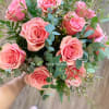 A beautifully wrapped arrangement of premium long stem pink roses