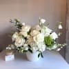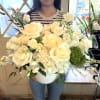Pure, timeless, and elegant — Helsinki features a luxurious blend of premium white Tibet roses with Dutch hydrangeas and lisianthus, in a a white ceramic flared vase.