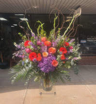 Beautiful varieties of blooms, with accents of curly willow.
