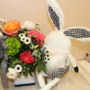 This fresh arrangement includes spring blooms, including the sweet black and white daisy "ying Yang". It is all accompanied by an adorable bunny gnome that can be taken out year after year. The gift that keeps on giving.