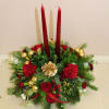 This floral Christmas centerpiece will be the star of the table! Take your holiday celebrations to the next level with glowing tapers above crimson red roses ceramic keepsake vase. Sending flowers for Christmas as sure to make spirits bright.
