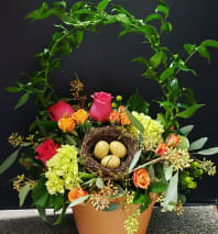In some instances, the florists’ photo may represent an overall theme or look and include a one-of-a-kind vase which cannot be exactly replicated. Although the actual bouquet may not precisely match the photo, its temperament will. Occasionally, substitutions of flowers or containers happen due to weather, seasonality and market conditions which may affect availability. If this is the case with the gift you've selected, the local florist will ensure that the style, theme and color scheme of your arrangement is preserved and will only substitute items of equal or higher value.