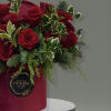 This elegant arrangement will set a holiday tone for any home or office. Full of red roses and holiday greenery, it will add a nice touch of Christmas decor to the room