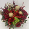 This elegant arrangement will set a holiday tone for any home or office. Full of roses and hydrangea and more, it will add a nice touch of Christmas decor to the room.