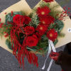 A festive winter bouquet filled with rich red blooms, seasonal greenery, and bright berry accents. Designed to capture the warmth and joy of the holiday season, this arrangement brings together classic red tones with natural textures for a full, vibrant look. Each bouquet is handcrafted using fresh seasonal flowers, making every piece unique while keeping the same joyful holiday feel. Perfect for celebrations, heartfelt gifts, or adding a touch of festive color to any space.