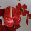 A bold red floral statement featuring premium roses, sculptural anthurium, and seasonal accents, arranged in a minimalist ceramic vase.