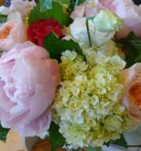 3 Different types of fragrant roses teamed with bright green hydrangea