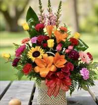 In some instances, the florists’ photo may represent an overall theme or look and include a one-of-a-kind vase which cannot be exactly replicated. Although the actual bouquet may not precisely match the photo, its temperament will. Occasionally, substitutions of flowers or containers happen due to weather, seasonality and market conditions which may affect availability. If this is the case with the gift you've selected, the local florist will ensure that the style, theme and color scheme of your arrangement is preserved and will only substitute items of equal or higher value.