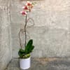 A lush single-stem Phalaenopsis orchid with colorful blooms. Single stem orchid plants covered with blooms. We pot them up in beautiful containers and stage them with branches, moss and textural accents in traditional Fiori Floral Design style. Available in a variety of colors. If you have a specific color preference, please let us know your first and second choice in the "Florist Instructions" on the order form.
