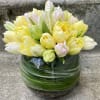 Our Tulip Bowl is a refined celebration of spring, designed to highlight the beauty of premium seasonal tulips. Each arrangement features premium tulips, such as parrot, double, variegated and peony tulips, which are chosen for their richness of color and fanciful form. The result is an arrangement that feels intentional, balanced, and quietly luxurious. This piece reflects the elegance of a French garden — clean lines, harmonious color, and a sense of graceful order.