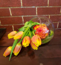 In some instances, the florists’ photo may represent an overall theme or look and include a one-of-a-kind vase which cannot be exactly replicated. Although the actual bouquet may not precisely match the photo, its temperament will. Occasionally, substitutions of flowers or containers happen due to weather, seasonality and market conditions which may affect availability. If this is the case with the gift you've selected, the local florist will ensure that the style, theme and color scheme of your arrangement is preserved and will only substitute items of equal or higher value.