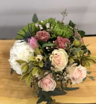 A designer will use their creativity to put together something special with seasonal flowers and beautiful premium greenery.