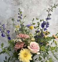 This arrangement style is perfect for those seeking the elegant look of a bouquet beautifully arranged in a special vase. Thoughtfully gathered, seasonally inspired flowers are placed in a tall vase for a striking presentation.