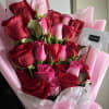 A beautiful arrangement of roses displayed in a column, wrapped in delicate pink paper that enhances their charm. Perfect for conveying elegance and beauty for any special occasion.
