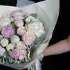 The Whispering Elegance Bouquet is a stunning arrangement that radiates sophistication and grace. This bouquet features an exquisite mix of white and light pink flowers, including peonies and ranunculus, accented with soft, velvety dusty miller foliage. Wrapped in luxurious white and beige paper, it is the perfect gift for expressing heartfelt emotions, celebrating special occasions, or adding a touch of elegance to any setting. The Whispering Elegance Bouquet, adorned with delicate ribbons, is a beautiful and thoughtful gesture that will leave a lasting impression on anyone who receives it.