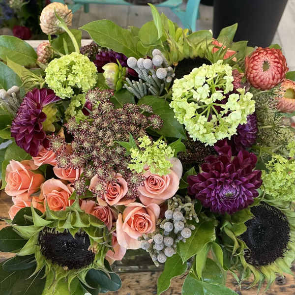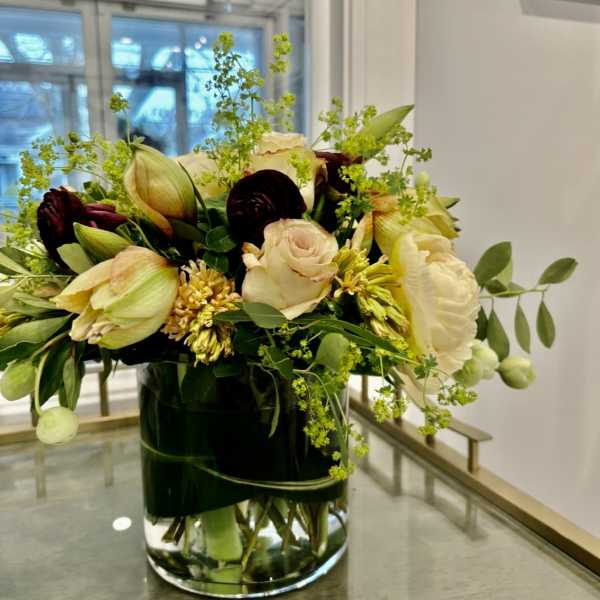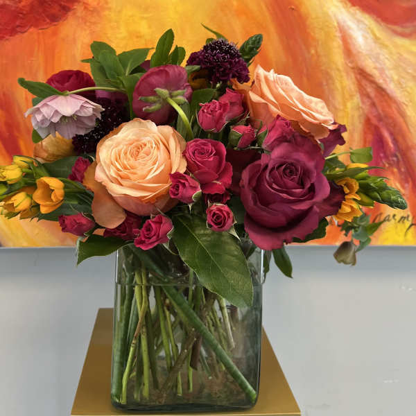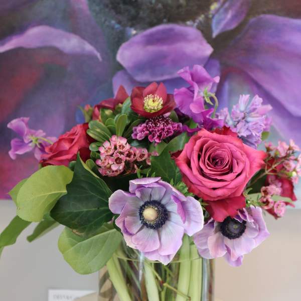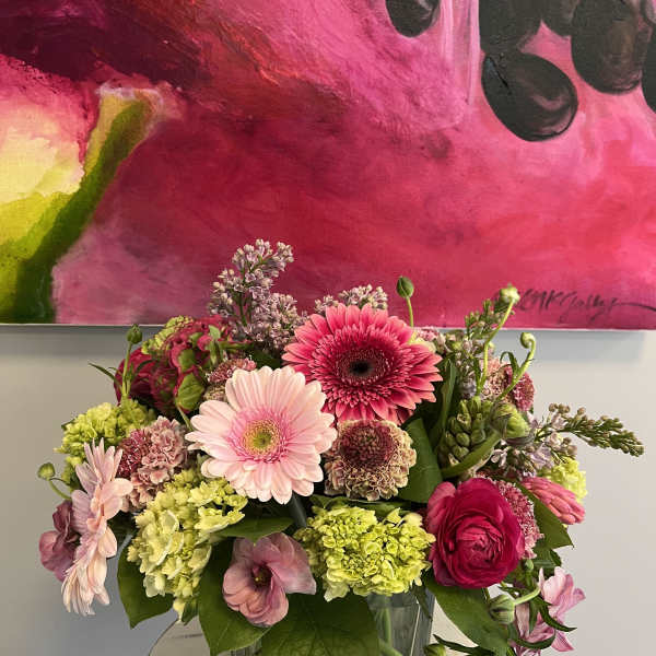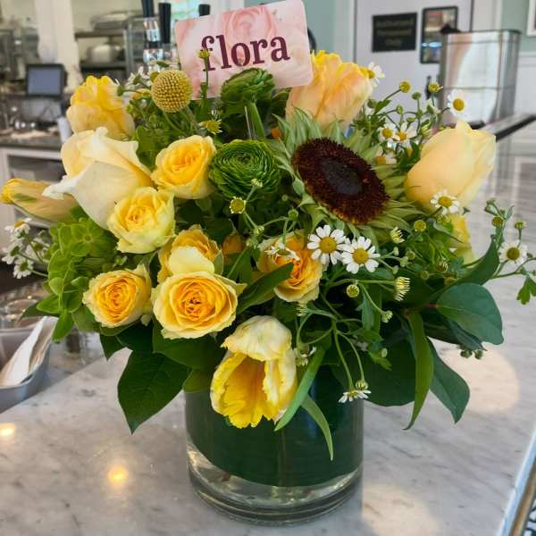 Flora is an independent woman owned flower shop. Specializing in parties, weddings, home decor and everyday occasions. We go to flower markets frequently and hand pick our blooms to make every arrangement especially personal. Karyn started her career in visual merchandising in 1990, this led to working in the flower business and meeting Amanda, Together they have created with an enthusiastic team, many ways to bring your flower visions to life. Artwork in photo: @skyhoytart