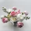 Yes Goddess! Send the goddess in your life our beautiful Aphrodite flower arrangement! Soft pink and white flowers are arranged gorgeously in a white ceramic contemporary vase.