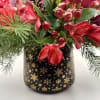 Spice up your holidays with our Krampus arrangement! Sultry reds and winter greens are arranged in a black ceramic vase with gold accents.