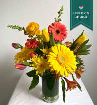 In some instances, the florists’ photo may represent an overall theme or look and include a one-of-a-kind vase which cannot be exactly replicated. Although the actual bouquet may not precisely match the photo, its temperament will. Occasionally, substitutions of flowers or containers happen due to weather, seasonality and market conditions which may affect availability. If this is the case with the gift you've selected, the local florist will ensure that the style, theme and color scheme of your arrangement is preserved and will only substitute items of equal or higher value.