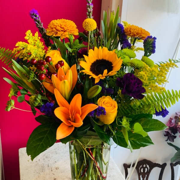 Once again Flora Savage created and delivered a beautiful arrangement of cozy fall colors, cheerful sunflowers, wonderfully fragrant lilies and roses. Hands down my favorite florist in New Orleans!